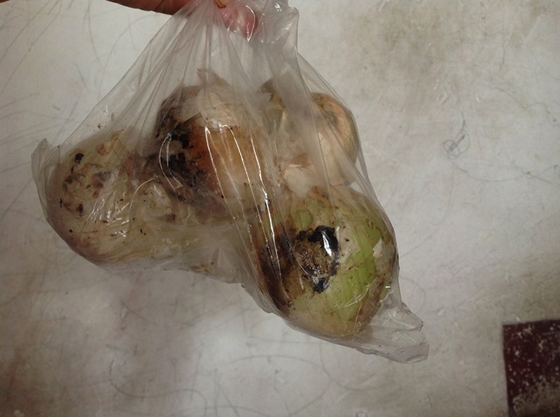 “Decían que traían buenos productos, pero mire, las cochinadas que nos dieron… Un kilo de jitomate podrido, chile morrón podrido, el brócoli está echado a perder también, las galletas están caducadas, champiñones están caducados, el aceite en spray caducado, la carne es del 2006 y ya hasta tiene manchitas parece que esta enlamada. La mantequilla que dieron aparte dentro de la misma despensa también está caducada”, dijo.