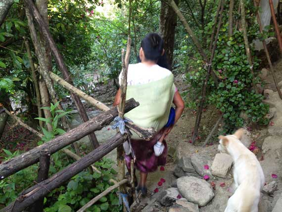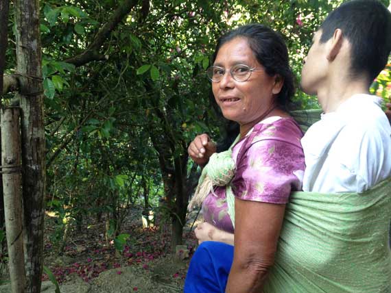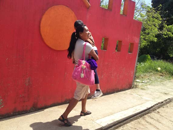 En la Huasteca Potosina el verde contrasta con el gris de los suelos de tierra de las casas de los niños con discapacidad que están en comunidades alejadas, como en Texquitote II donde vive Juan, a quien carga su madre, la señora Teodora. En el Centro de Atención Múltiple, Teodora es una de las mamás más participativas. Está convencida que llevar a su hijo le ayuda a mejorar su calidad de vida. Por eso lo carga, lo abraza con su rebozo, porque si no fuera por ella nadie lo haría. Por eso, aunque le duela la espalda y tenga los pies cansados, lo seguirá haciendo hasta que pueda y tenga las fuerzas de andar con su Juan a cuestas.