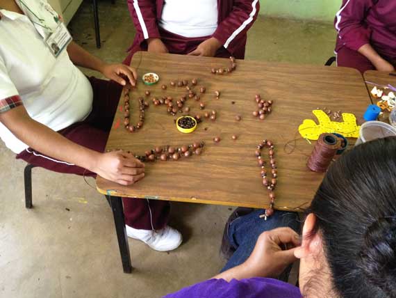 Marce, quien mide un poco más de un metro de altura, habla poco pero lo suficiente para demostrar que extraña ir a la escuela. Sin que su mamá la pueda bajar de la comunidad cargando y luego esperar un camión, desde su casa elabora collares que sus maestros le dieron para hacer. En su casa no tiene gas, agua potable ni luz. Sus ingresos como el de otras madres llegan por medio de programas sociales o de lavar ropa ajena, limpiar casas o del comercio.
