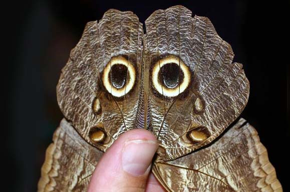 3. Algunas mariposas pueden combinar sus colores incluso con las hojas de las plantas o de los árboles donde se posan. Hay también algunas que en sus alas han pintado una cabeza falsa, como la mariposa de esta foto. A primera nos parece un animal con ojos grandes, lo que les da un camuflaje suficiente para defenderse de los depredadores.