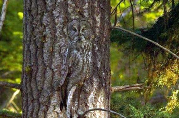 10. Además de los insectos, reptiles y peces, también las aves son excelentes ejemplos de mimetismo. Sus plumas pueden tomar los colores de su entorno, tanto que los animales que suelen ser su menú apenas tienen posibilidades de sobrevivir si están cerca de ellos. Por ejemplo, este búho sería difícil de ver a simple vista en su entorno natural.