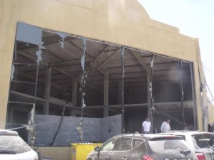 REYNOSA, TAMAULIPAS, 15MAYO2014.- Dos muertos y al menos 17 heridos y pánico en la ciudad es el saldo de una explosión en un centro comercial en la colonia Colina del Pedregal al sur de Reynosa, Tamaulipas. De acuerdo a los informes, la acumulación de gas en el inmueble que alberga un restaurante de comida china, un despacho y una mueblería, al parecer fue lo que causó que se desplomara tras la explosión que cimbró unos 300 metros a la redonda del lugar. Tras los efectos de la exploisión, se contabilizan 18 vehículos que estaban estacionados cerca de la mueblería Marcotem y Ramsa. El área del accidente está resguardada por elementos de la Secretaría de Marina Armada de México (Semar), Secretaría de la Defensa Nacional (Sedena), Policía Federal y Elementos de Protección Civil.
