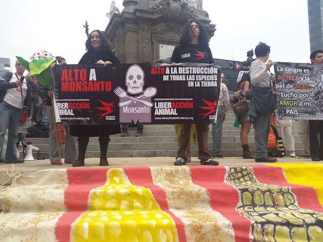 Ciudad de México, 24 de mayo (SinEmbargo).- Decenas de manifestantes marchan el día de hoy en el Paseo de la Reforma de la Ciudad de México, en medio de la jornada global en defensa del país y en contra de la empresa distribuidora de químicos para la agricultura Monsanto.