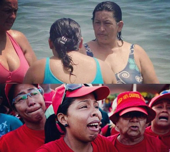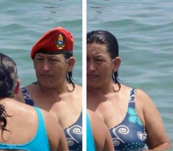 Y los comentarios tampoco se han hecho esperar: "Chávez se volvió mujer", "el hermano-camarada se ha reencarnado, ¡bendecido sea!", "pobrecita esa señora con cara de Hugo Chávez", "vas a la playa y te encuentras con Hugo Chávez y "comandante...Eres tú?".