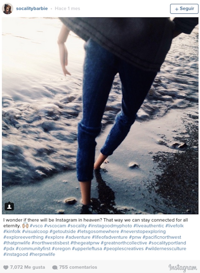 Ciudad de México, 6 de septiembre (SinEmbargo/ The Huffington Post).- Socalitybarbie parece ser un homenaje a Barbie, sin embargo, es sólo la máscara, pues más que ser usada como una red social que comparte las aventuras de la muñeca más conocida del planeta, es una crítica para quienes usan Instagram.