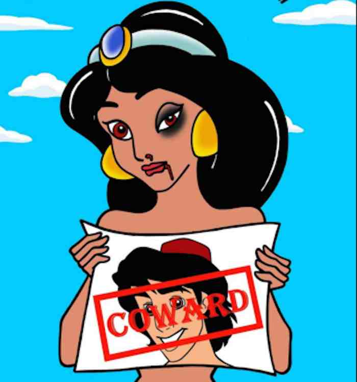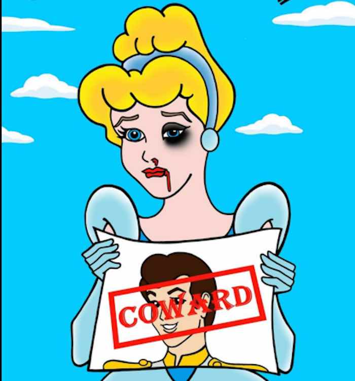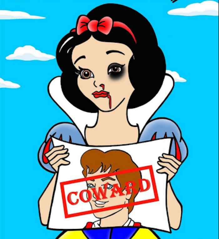 Además de estas fotografías, el artista italiano también ha realizado una serie en la misma línea pero con personajes animados: desde las princesas de Disney hasta Vilma Picapiedra, Marge Simpson u Olivia Olivo muestran sus golpes mientras sujetan un folio con la imagen de sus respectivas parejas en la ficción y una palabra: "Coward" (cobarde).