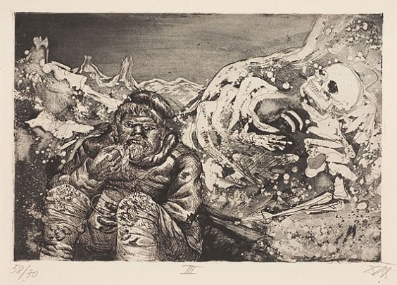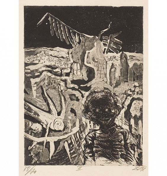 Der Krieg es una serie de 51 grabados que intencionalmente están inspiradas en la obra de Goya, quien también supo plasmar los conflictos bélicos de su tiempo en la serie Los Desastres de la Guerra. La obra del alemán tomaría luego, con el paso de los años, un estilo más sosegado y enfocado en el retrato. Sin embargo, es esta obra gráfica, plagada de visiones pesadillescas y alucinatorias, la que queda asociada para siempre a la imagen de este artista y testigo presencial de la violencia llevada a su máxima expresión.