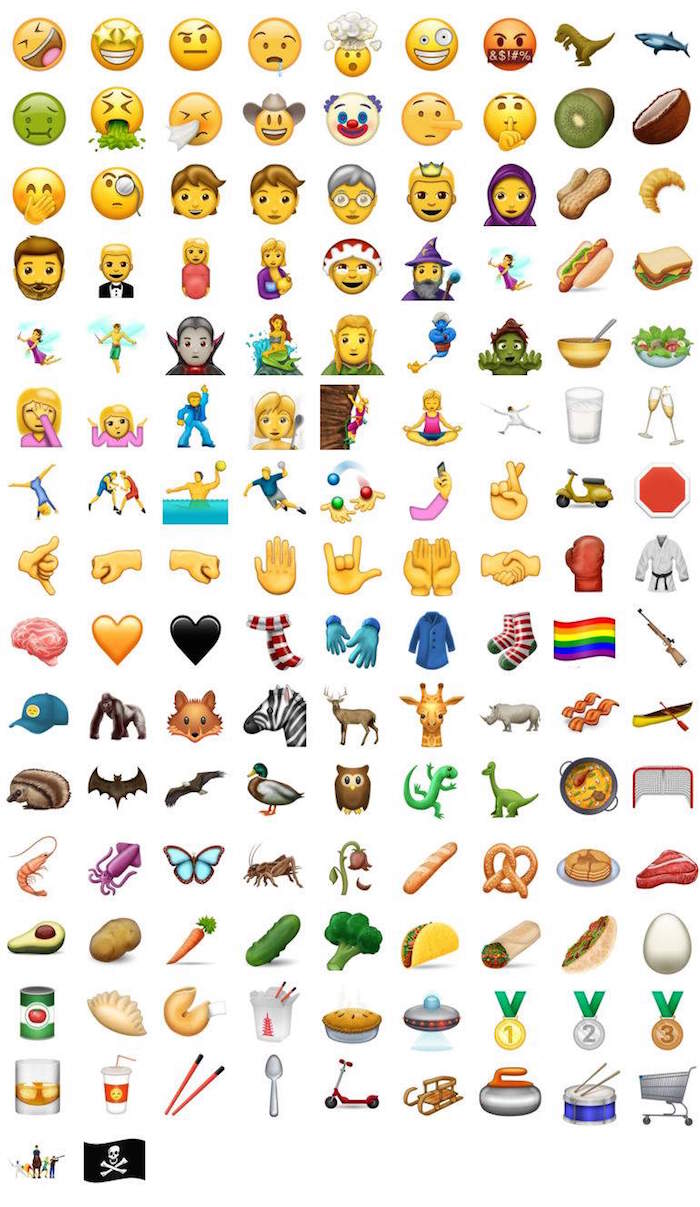 Con la versión 5.0 de la Emojipedia los emojis crecerán con 137 elementos nuevos propuestos (entre los que se encuentran cambios de dibujos actuales y novedades) entre los que se incluyen a los otros 51 emojis que en un principio había aceptado la organización Unicode para su décima versión.