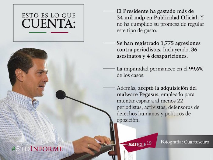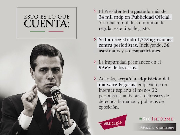 Imagen compartida por Artículo 19 acerca de las cifras no dichas en el V Informe de Gobierno. Foto: Twitter @article19mex