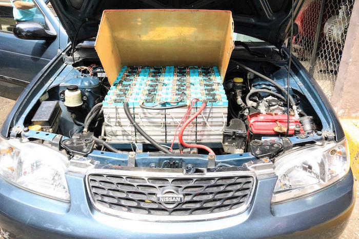 César Gómez Sierra tiene un Sentra 2002, de transmisión manual a cinco velocidades y 130 caballos de fuerza; ahora, gracias a las modificaciones que hizo, su vehículo es completamente eléctrico y en él sólo invierte 4 pesos para un trayecto de 25 kilómetros, a una velocidad promedio de 80 kilómetros por hora.