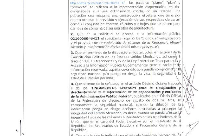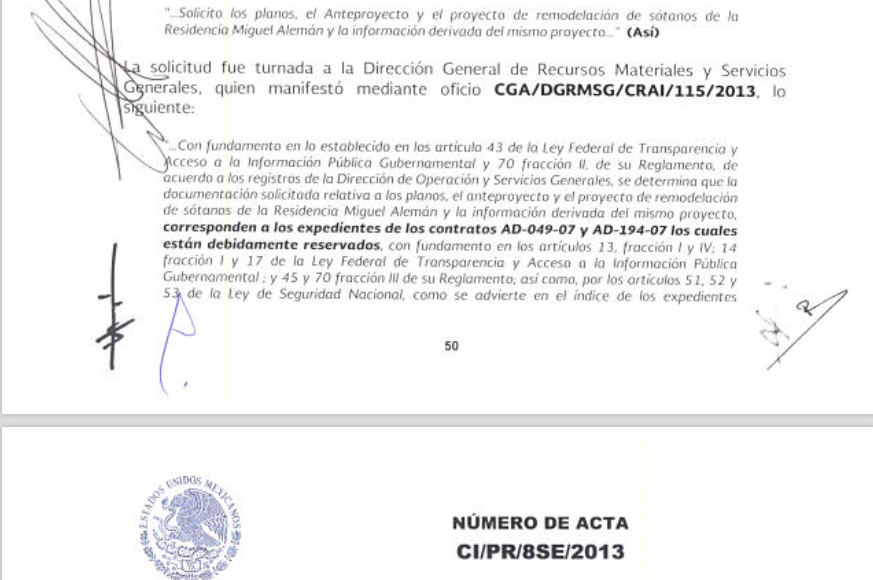 Hace una década, para reservar la información, el ex Primer Mandatario, Felipe Calderón argumentó razones de seguridad nacional y el Comité de Información de la Presidencia de la República le dio la razón. Cuando un ciudadano solicitó los planos en 2013 –ya en el sexenio de Enrique Peña Nieto- en el acta CI/PR/8SE/2013 quedó asentado lo siguiente: “Dichos documentos contienen especificaciones técnicas y arquitectónicas de las instalaciones de la Residencia Oficial de Los Pinos, lo que podría traer como consecuencia que diversos grupos contrarrestaran con equipos de mayor o igual tecnología las herramientas de seguridad interior y exterior de las instalaciones …”.