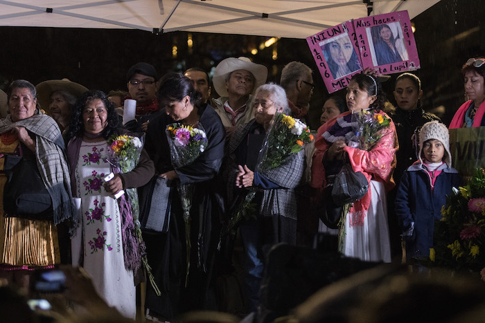 México, 24 ene (EFE).- Dos centenares de personas se concentraron hoy a pesar de la inclemente lluvia en Ciudad de México para escuchar a la aspirante presidencial indígena María de Jesús Patricio, conocida como Marichuy, quien hizo un llamamiento a "no perdonar" el dolor sufrido por las minorías étnicas mexicanas.