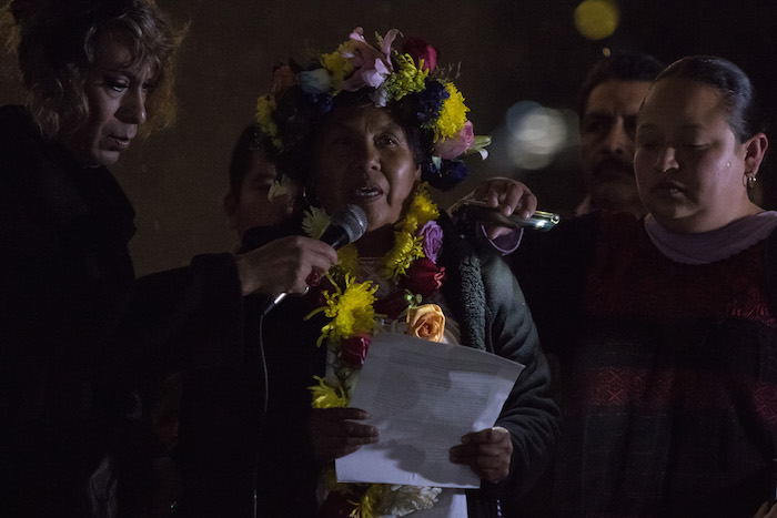 La intervención de Marichuy fue precedida por miembros de la sociedad civil que denunciaron el elevado número de mujeres asesinadas en México, la ineficacia de las autoridades ante la crisis humanitaria generada por los terremotos del pasado septiembre o los casos de muertes en manos de policías y el crimen organizado.