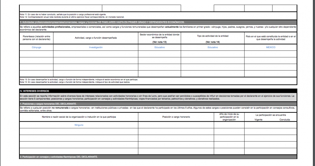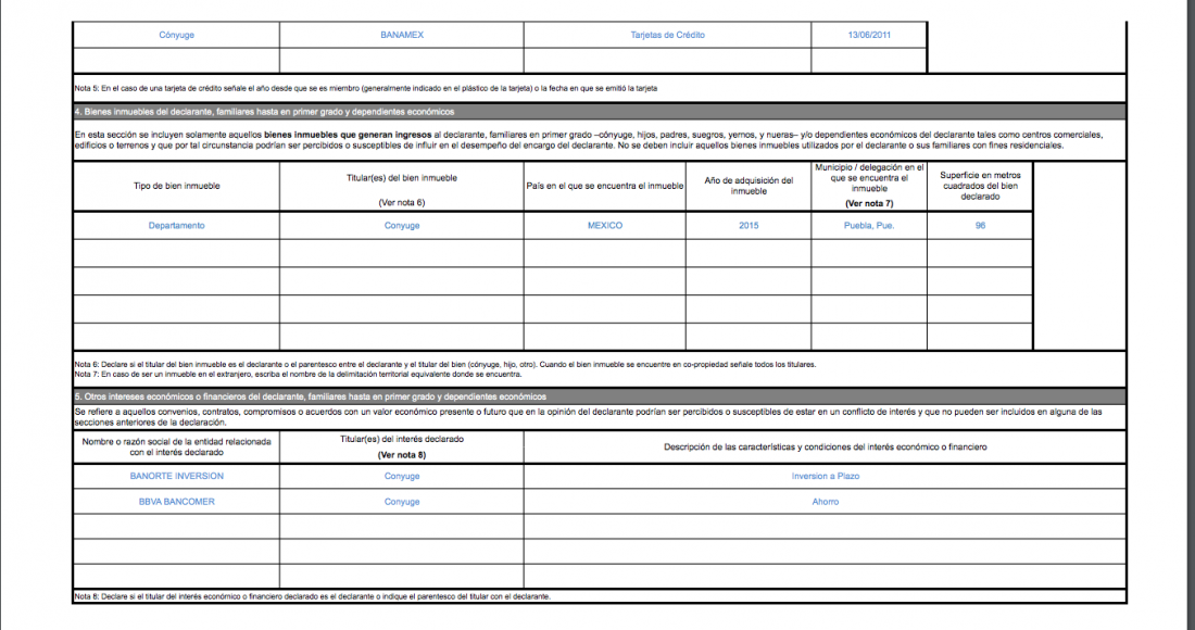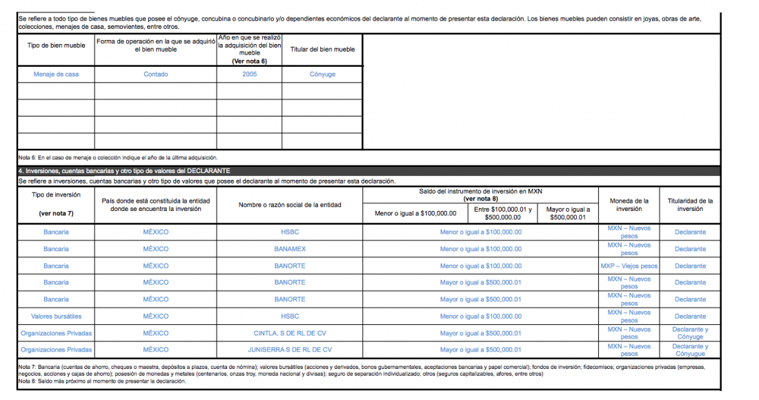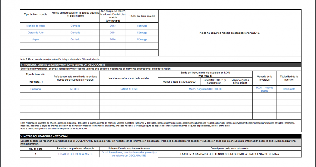 “La manera de los políticos mexicanos de declarar sus fortunas escapa a los estándares internacionales. Y en este sexenio, no se logró nada. Más que clave de confianza, las declaraciones patrimoniales se volvieron fuentes de sospechas. Los funcionarios de todos los ámbitos generan más lagunas que precisiones cuando declaran sobre sus fortunas”, expresa.