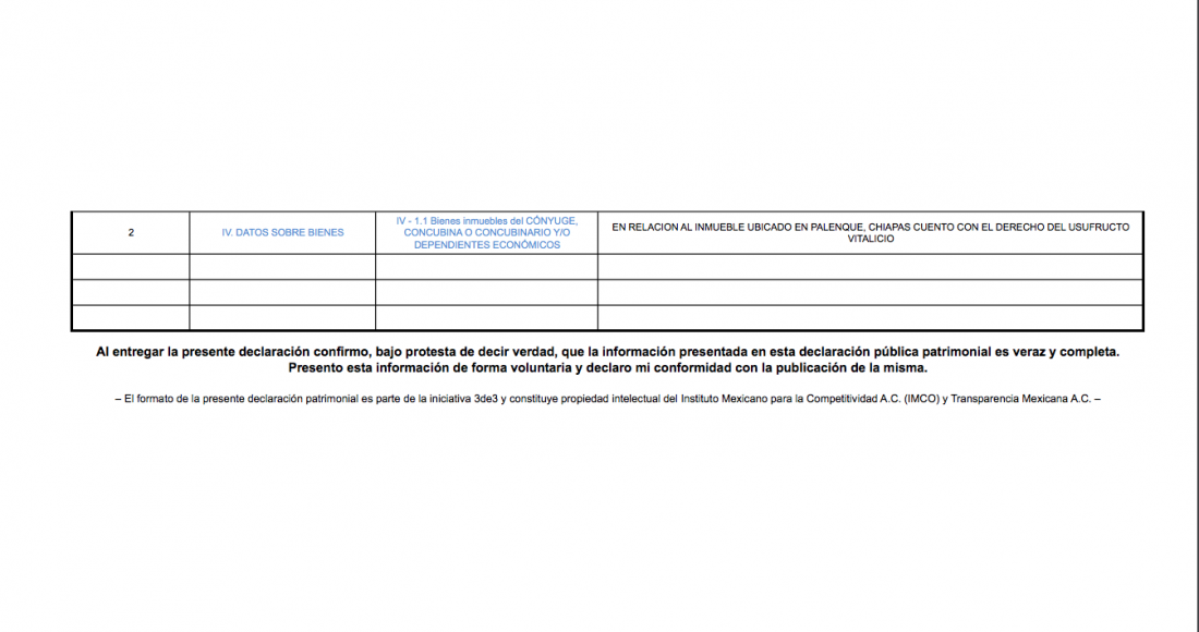 Además, las propiedades presentadas en 2000, cuando era Jefe de Gobierno del Distrito Federal, han desaparecido de sus menciones. La declaración de aquel año contenía un departamento en el Distrito Federal adquirido a crédito en 1984, que ahora no está. También una casa ubicada en Villahermosa, Tabasco, adquirida en 1981, que tampoco está. También, una casa en Teapa, Tabasco, adquirida en 1985 que no está mencionada ni por asomo. Otra en Teapa, adquirida en 1998, por donación o herencia que no está, y un predio rústico en Teapa, Tabasco, adquirido en el 2000 que tampoco se encuentra.