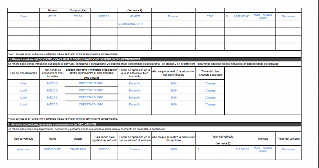 AMLO no detalla qué pasó con cuatro propiedades que tenía en 2000 y ahora ya no. Dice no tener bienes y ganar 50 mil pesos. De hecho, su declaración 3de3 arroja un “no” para casi todo. Ricardo Anaya Cortés declara dos casas de casi 500 metros cuadrados de construcción cada una y locales en Querétaro; todos obtenidos bajo donación sin decir de quién ni por qué. José Antonio Meade Kuribreña jamás aceptó que su fortuna se hiciera pública ante los ciudadanos durante los 17 años que estuvo en el servicio público y hoy, no es posible conocer cuánto dinero tiene.