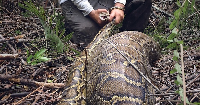Las pitones de Birmania fueron introducidas a Florida desde el sudeste asiático como animales domésticos en los años 1970. Algunos ejemplares que se escaparon o que fueron dejados en libertad se adaptaron a las condiciones de la región de los Everglades, y desde entonces suponen una amenaza para el ecosistema.