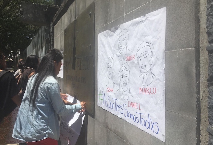 Ciudad de México, 24 de marzo (SinEmbargo).- Un grupo de jóvenes se manifestaron hoy en la representación del Gobierno de Jalisco en la Ciudad de México para exigir que los tres jóvenes desaparecidos en Tonalá aparezcan con vida.