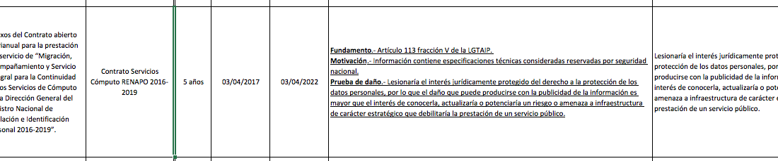 ¿Qué hicieron? Los ciudadanos no pueden conocer si esa inversión fue efectiva. La dependencia reservó los anexos del contrato (la parte técnica) del 3 de abril de 2017 al mismo día de 2022. Para entonces, habrán pasado ocho años de la desaparición de los 43 estudiantes de la Normal Rural Superior Raúl Isidro Burgos que estremeció al Gobierno de Enrique Peña Nieto con el despunte en reprobación hasta 80 por ciento. Quien gane las elecciones presidenciales de 2018 cumplirá cuatro años en el Gobierno cuando ese contrato pueda conocerse.