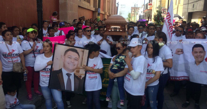 Entre porras y vivas fue recibido el cuerpo de Aguirre Sánchez, abanderado el Movimiento de Regeneración Nacional (Morena), Partido del Trabajo (PT) y Encuentro Social (PES).