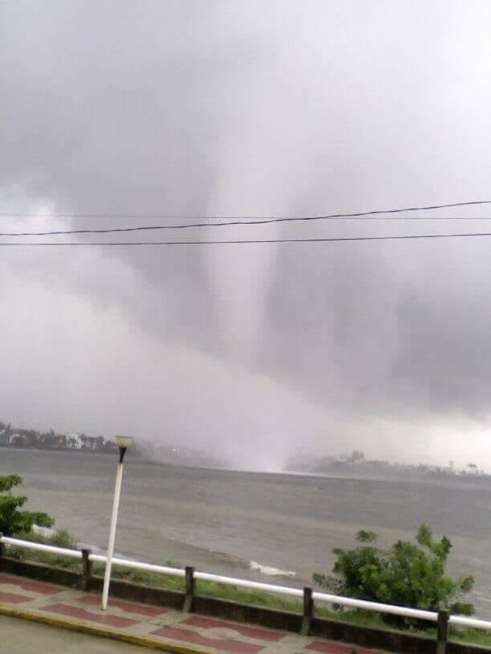Al parecer una tromba marina se desarrolló frente a Coatzacoalcos, Veracruz, y logró ingresar a la costa convirtiéndose en un tornado.