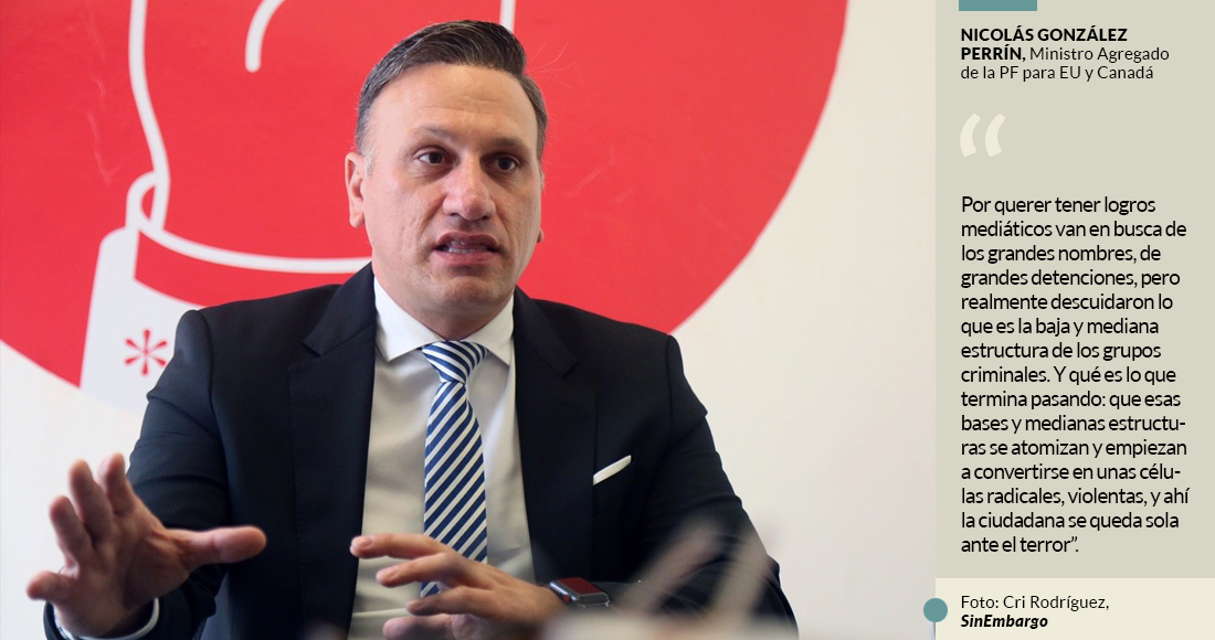 Nicolás González Perrín, quien fue el encargado de la detención de Joaquín "El Chapo" Guzmán Loera, es hoy Ministro Agregado de Seguridad de la Policía Federal ante los gobiern0s de Estados Unidos y Canadá. En entrevista con SinEmbargo, el funcionario hace una seria crítica a la estrategia de seguridad emprendida en las dos últimas administraciones federales y asegura que uno de los principales errores fue descuidar a las corporaciones preventivas y la evolución de las células criminales.