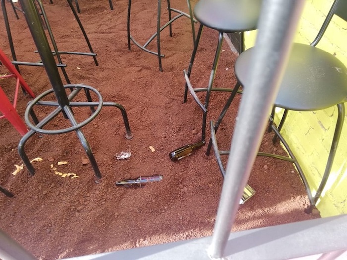 Con sillas tiradas, envases rotos y los sellos de clausurado en sus puertas quedó el bar Cholulita Terrazas, el lugar de San Andrés Cholula que fue atacado a balazos el día de su inauguración, en las primeras horas de este sábado 7 marzo.