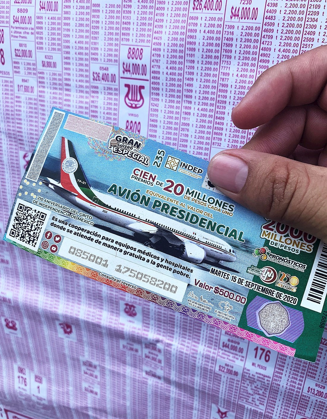 López Obrador compró la semana pasada el primer boleto del sorteo, que ocurrirá el 15 de septiembre en la sede de la Lotería Nacional, donde se entregarán 100 premios de 20 millones de pesos (cerca de un millón de dólares) cada uno, con un total de 2 mil millones de pesos (unos 100 millones de dólares).