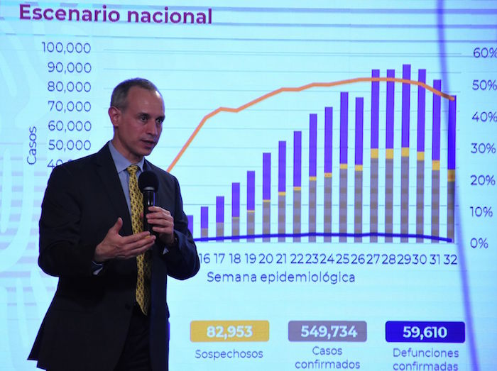 "Buenas noticias. El aspecto de la epidemia en México es muy positivo, está en una fase clara de descenso", aseguró el pasado 18 de agosto López-Gatell en la rueda de prensa matutina del presidente mexicano Andrés Manuel López Obrador.