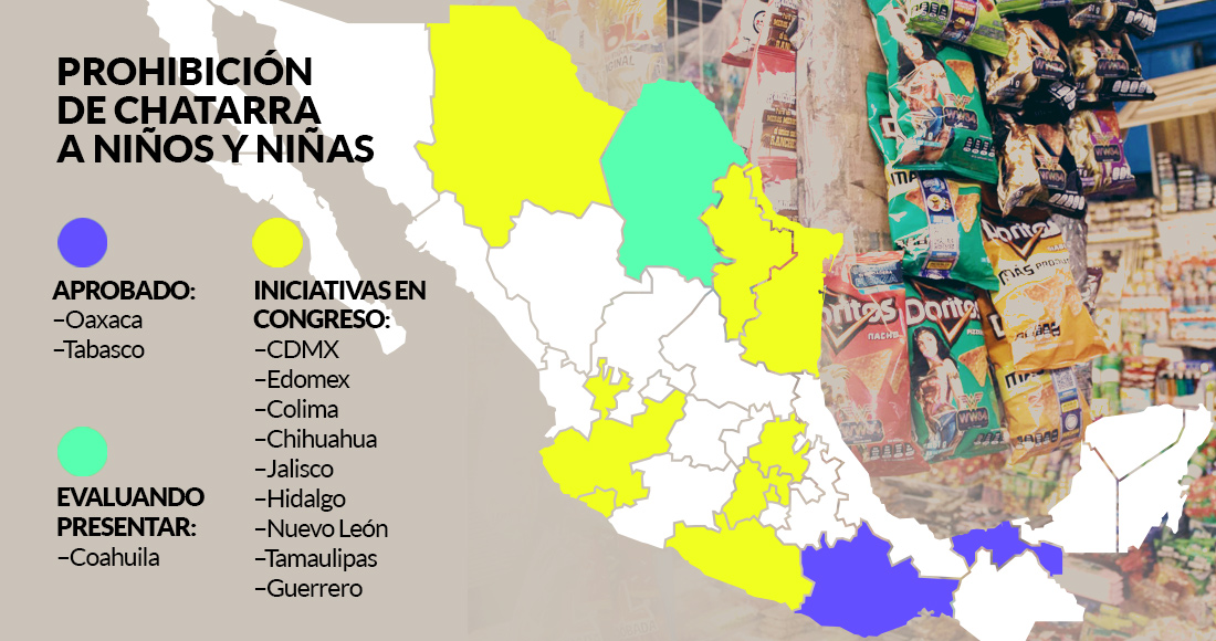 Hasta el momento, pese a protestas de tenderos, dos Gobiernos estatales han prohibido la venta, regalo o suministro de chatarra a menores de edad y otros nueve han presentado iniciativas similares para discutirlas, en el marco de la crisis sanitaria en que las comorbilidades por diabetes, obesidad y diabetes han agudizado el número de fallecidos por la COVID-19 en el país.