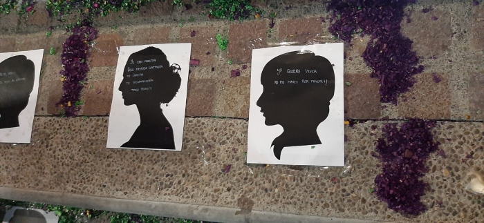 Sin embargo en el piso se colocaron las siluetas de esas personas, cuyos cuerpos fueron hallados en las fosas clandestinas. Ahí con las veladoras encendidas, los familiares rezaron y cantaron en memoria de sus seres queridos.