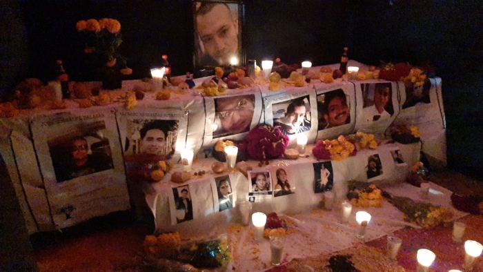 En el altar se colocaron flores de cempasúchil, veladoras y las fotografías de aquellos que han sido localizados sin vida.