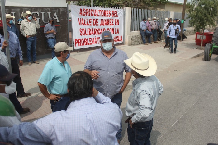 Agricultores de Ciudad Juárez se manifestaron en las instalaciones de Conagua para mostrar su apoyo a sus pares que tomaron en septiembre las instalaciones de la presa "La Boquilla" contra el Tratado de 1944 con Estados Unidos. Foto: Cuartoscuro.