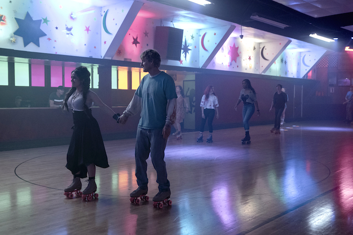 En una escena van a una pista de patinaje sobre ruedas y hacen que los demás patinadores se muevan a su gusto usando los cristales. Hayek contó que tuvieron que tomar clases para desoxidarse.