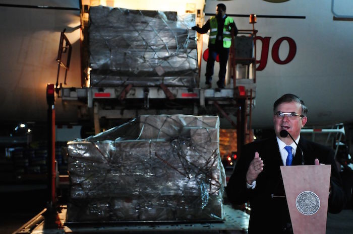 En esta imagen del 14 de febrero se observa al Canciller Marcelo Ebrard recibiendo un lote de vacunas anticovid de AstraZeneca. Foto: Cuartoscuro.