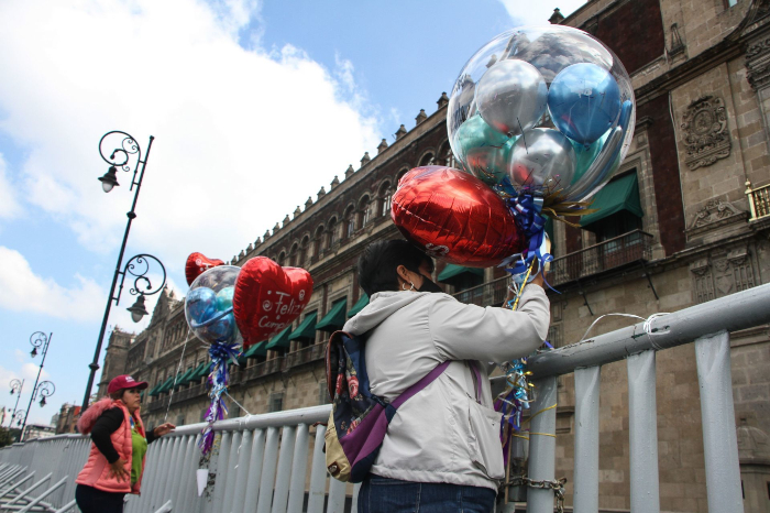Una florería también se hizo presente en la zona y dejó algunos arreglos florales y globos rojos con la leyenda "Feliz cumpleaños, Presidente Andrés Manuel López Obrador".