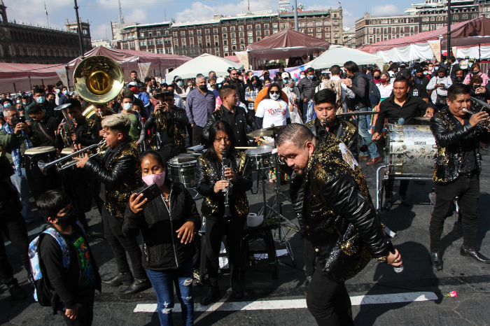 A las 6:30 horas llegaron tres mujeres que se autodenominan Las Adelitas de Andrés Manuel acompañadas con el mariachi Alma Latina de Garibaldi, que entonó temas como "En tu día" y "El Rey".