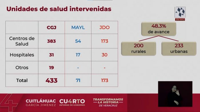 El mandatario estatal señaló, durante la presentación de su IV Informe de Gobierno, las fuertes inversiones realizadas por la entidad para rehabilitar unidades médicas e instituciones de salud, incluyendo la Universidad Veracruzana.