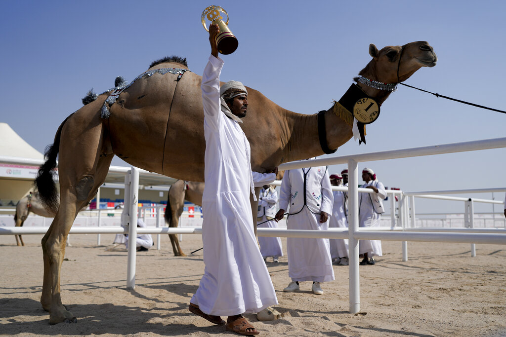 MESAIEED, Qatar (AP) — Shaheen se estiró en la arena y cerró los ojos. Pero había poco tiempo para que este camello descansara.