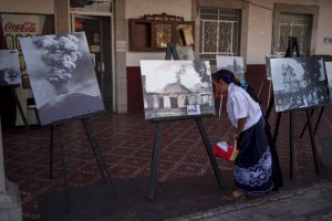 Una chica mira una exhibición sobre fotos históricas del volcán Paricutín en conmemoración de la erupción inicial que duró nueve años, en San Juan Nuevo Parangaricutiro, México, el lunes 20 de febrero de 2023. Un equipo de geólogos del Departamento de Interior de Estados Unidos y científicos mexicanos visitaron el lugar en 20 ocasiones durante los siguientes años y elaboraron un informe sobre los nueve años de erupción más de una década después. Foto: Eduardo Verdugo, AP.