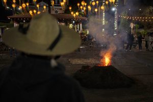 Residentes celebran el nacimiento del volcán Paricutín volcano, en San Juan Nuevo Parangaricutiro, México, el lunes 20 de febrero de 2023. Los nueve años que duró la erupción comenzaron el 20 de febrero de 1943. El centro de la actividad apareció en un maizal cerca del pueblo de Paricutín. Foto: Eduardo Verdugo, AP.