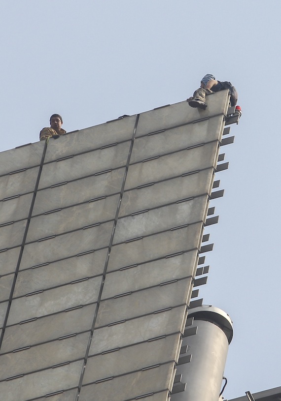 El joven es identificado como Jamspa Montaño y ya había realizado el acto anteriormente, el 7 de julio del 2012, donde también colgó una manta en lo alto de la torre.