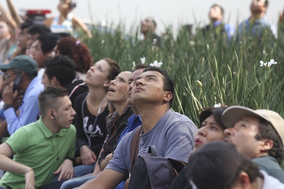 De acuerdo con reportes de prensa, el joven arrojó varias cartulinas que llevaban mensajes como: "Mancera represor, libera a los presos políticos y ahora manda a tus granaderos", "Protestar no es un delito. Revolución" y "Si querer una mejor educación, más seguridad, mas trabajo, es delito, entonces somos delincuentes".