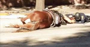Adiós, mi amor: Un policía abraza a su yegua, fiel compañera, en el momento final 8 de diciembre de 2015