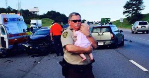 FOTO de un agente de policía que carga a una bebé en lugar de accidente se vuelve viral 12 de octubre de 2015