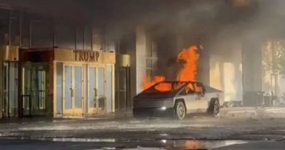 VIDEO ¬ Cybertruck con fuegos artificiales explota frente a Torre Trump en Las Vegas