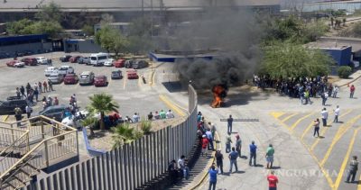 Trabajadores de AHMSA queman llantas y bloquean avenida para exigir pago de salarios