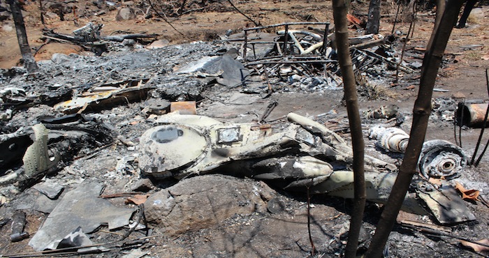VILLA PURIFICACIÓN, JALISCO, 05MAYO2015.- La Sedena confirmo en un comunicado de prensa que seis militares que formaban parte del equipo que viajaba en el helicóptero Cougar matrícula 1009 fallecieron al ser derribado por una arma de alto calibre, el pasado viernes durante la la de violencia que se vivió en el estado y en donde nueve miembros del Cartel Jalisco Nueva Generación también fueron abatidos. En la imagen el punto en donde se observan los restos de la aeronave.